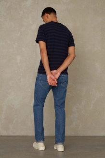 Classic, five pocket jeans with a tapered leg and a long rise.
