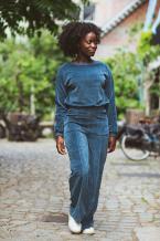 Loose stylish trousers to just above the ankles. With a slightly wider waistband to conceal your tummy and accentuate waist. These trousers are wonderfully comfortable. The pockets are subtly tucked away so the silhouette is not interrupted.