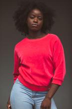 De trui heeft ronde hals en aangesneden driekwart mouwen.( twee kleuren)