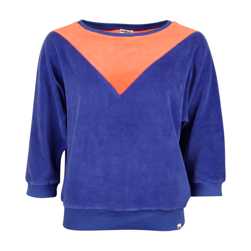 Deze sweater met ronde hals in twee kleuren zit wat losser bij het bovenlichaam en sluit meer aan bij de mouwen(3/4)