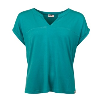 Leuk, elegant T-shirt met een pofeffect aan de onderkant. De naad aan de voorkant, die doorloopt tot de onderzoom, zorgt voor een afslankend effect. Zacht dankzij de Tencel-stof, maar net zo sterk als polyester. Mooi te combineren met een eenvoudige broek of rok.