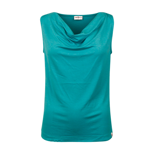 Stijlvolle mouwloze top met een flatterende watervalhals, gemaakt van 95% viscose en 5% elastaan voor een zachte, soepele en licht rekbare pasvorm. Ideaal voor zowel casual als chique outfits.